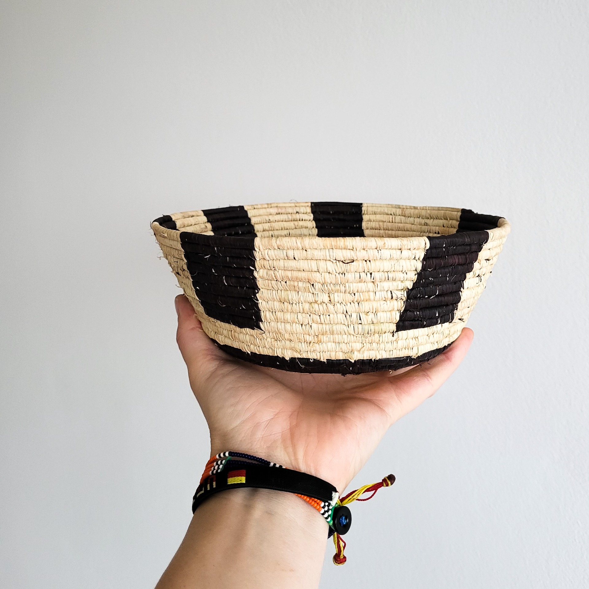 uvázaná z ugandských lokálních přírodních materiálů / opletená bílým x černým lýkem