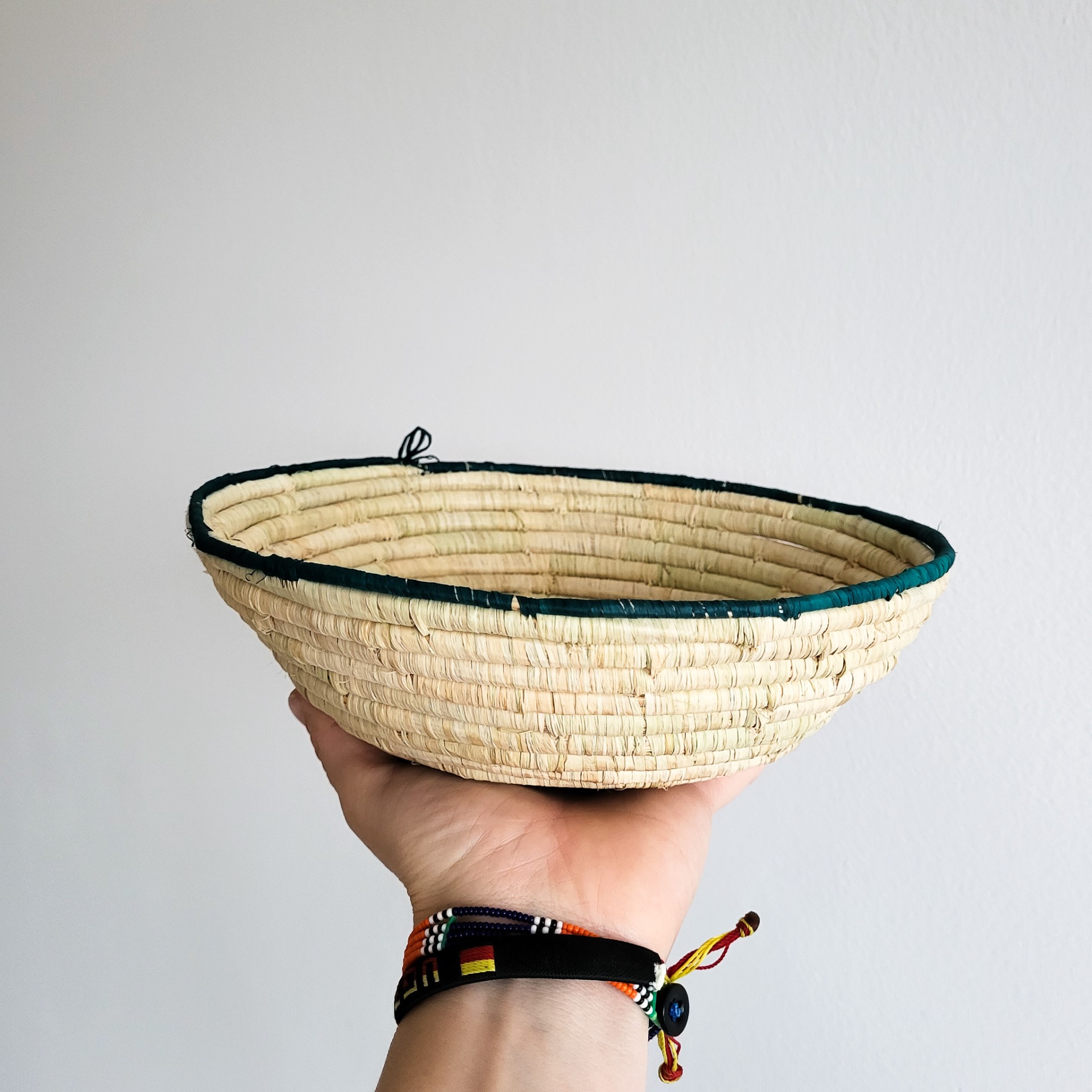 uvázaná z ugandských lokálních přírodních materiálů / opletená bílým x hnědým lýkem