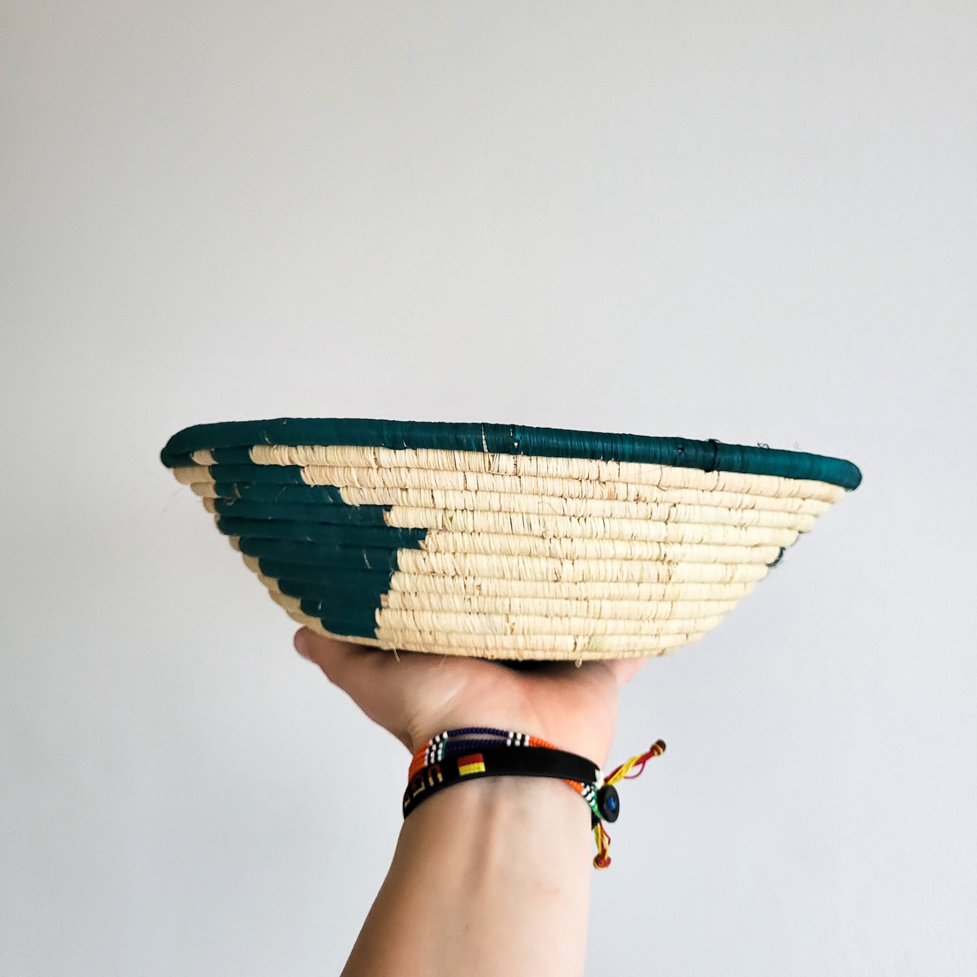uvázaná z ugandských lokálních přírodních materiálů / opletená světlým x zeleným lýkem