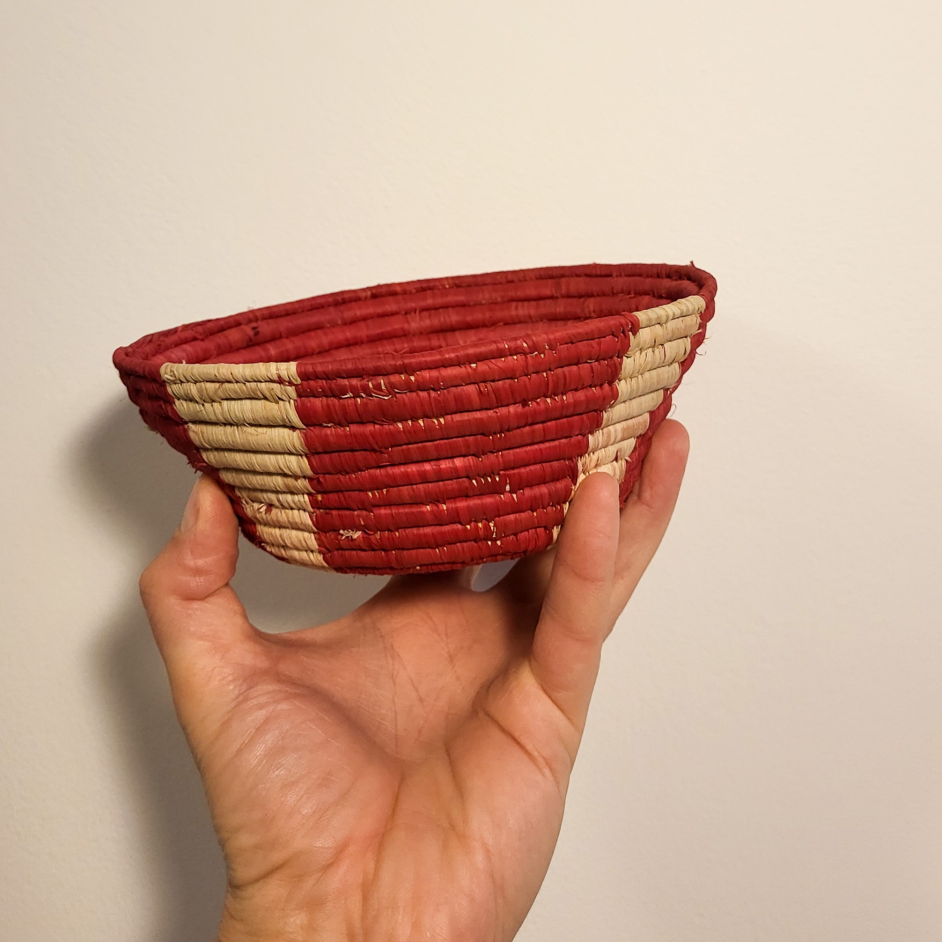 velmi jemně a hustě uvázaná z ugandských lokálních přírodních materiálů